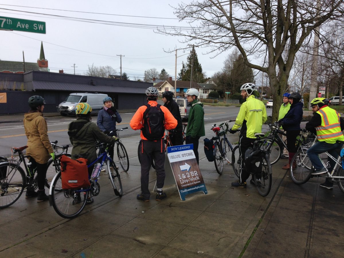 Right now, neither of them has good options, so they organized a ride with other West Seattle Bike Connections members, Gordon Padelford from Seattle Neighborhood Greenways, Cascade Bicycle Club’s Kelsey Mesher, and three SDOT outreach and project management people to look into improvements.