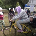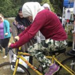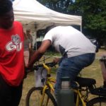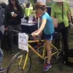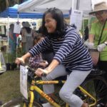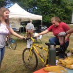 girl on bike with bike blender to make smoothies at Delridge Day