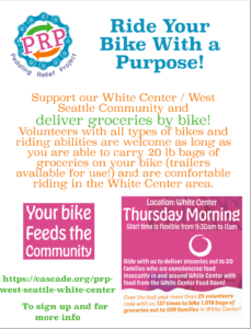 Have you heard about the Pedaling Relief Project? They are inviting new volunteers to deliver groceries by bike from White Center Food Bank to people in need in White Center and West Seattle.