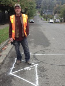 A crew was out yesterday installing bike detectors on Juneau to trigger the stop light at Delridge. One of them asked me as I stopped at the light if I ride this way often. And he gave a nice unsolicited explanation of the bike detectors, here for you, too. short video